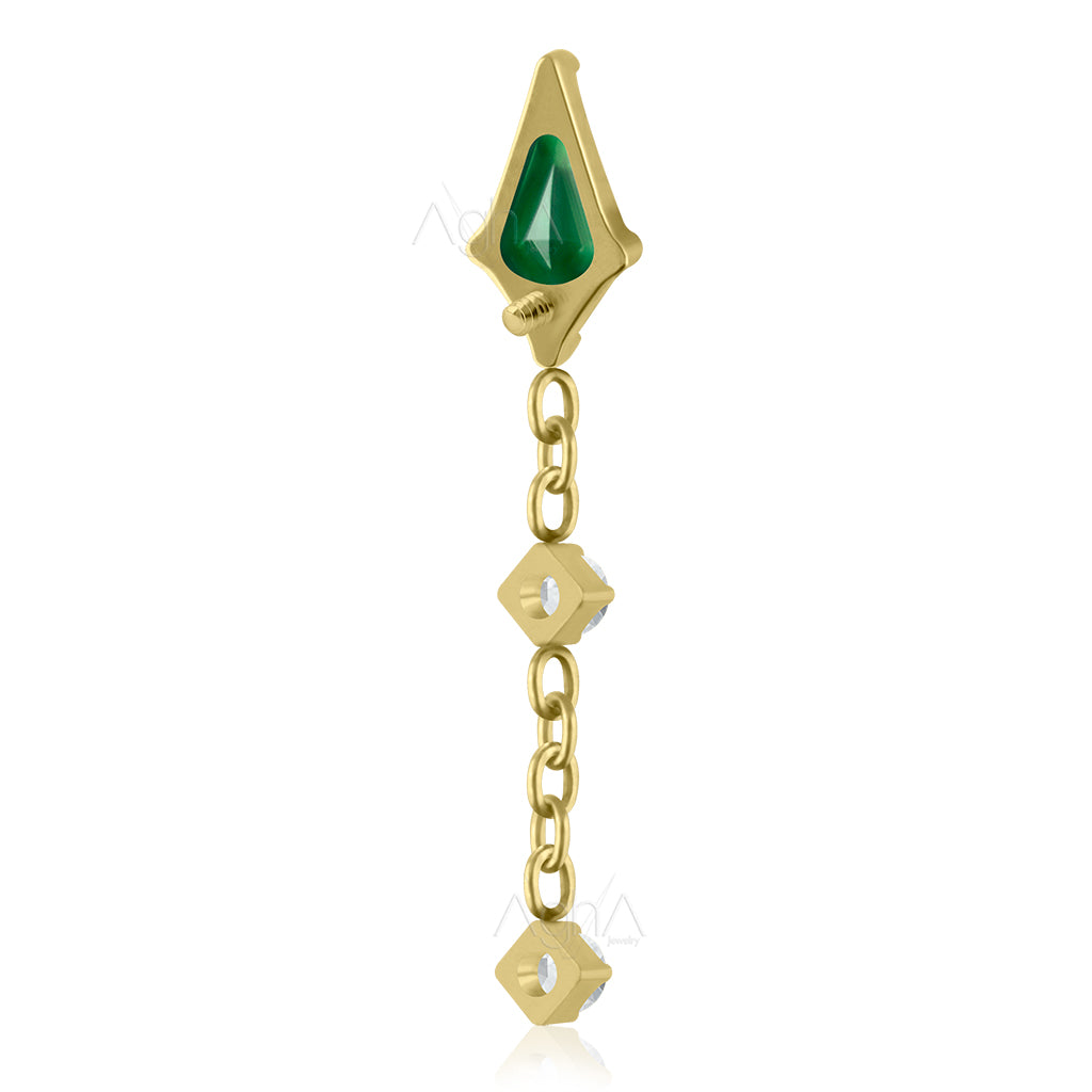 Implant Grade Plated Gold Titanium Jewelry Internally Threaded Top, Kite Chain Prong set, Cubic Zirconia.