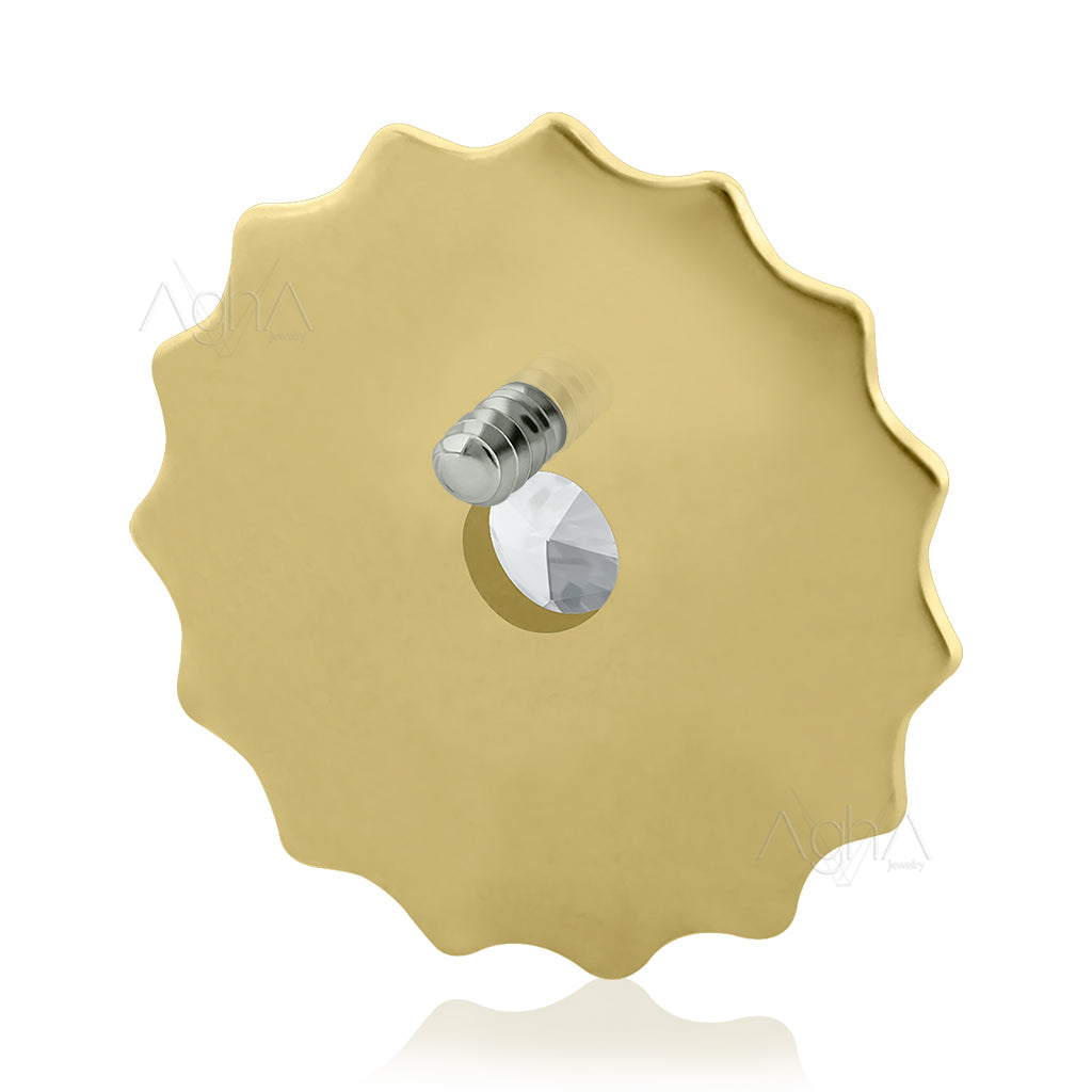 Implant Grade Plated Gold Titanium Jewelry Internally Threaded Top, Sun Beveling, Bezel set, Cubic Zirconia.