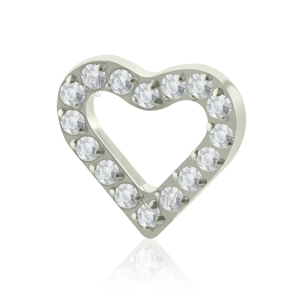 ASTM F136 Implant Grade Titanium Jewelry Threaded Heart Frame, Prong set, Cubic Zirconia