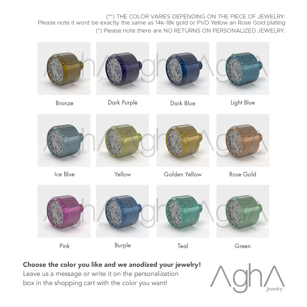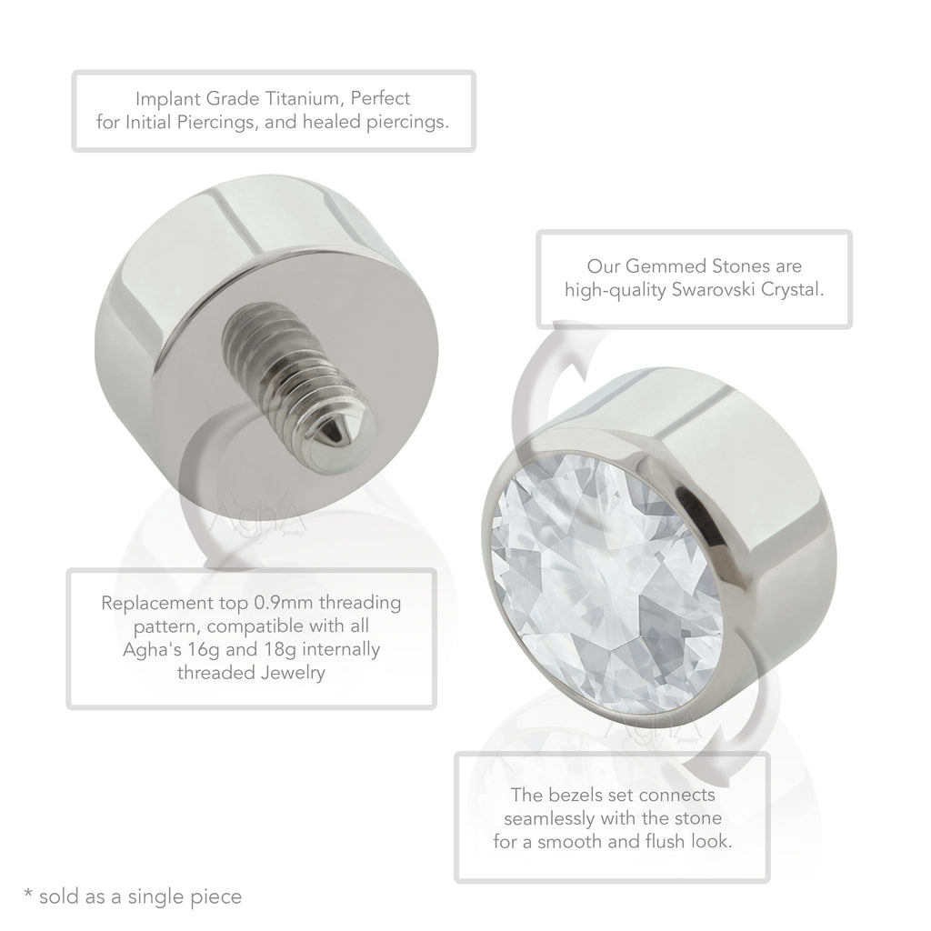 Implant Grade Titanium Jewelry Internally Threaded Bezel Set, Cubic Zirconia