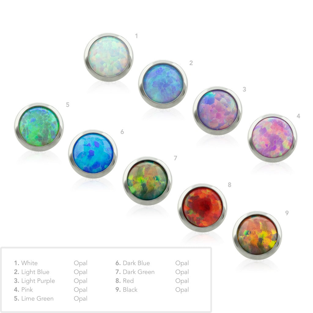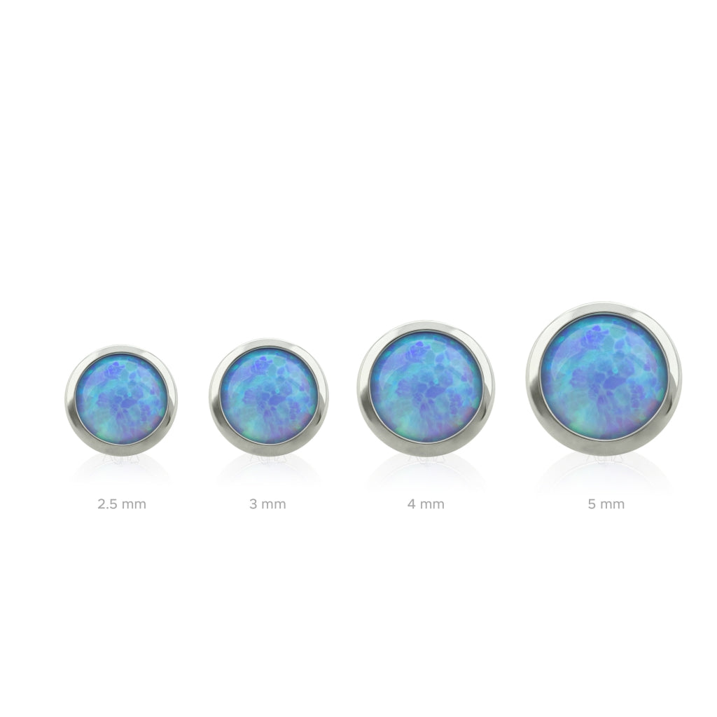 Pair 16g Titanium ASTM F136, Internally Threaded Labret (Top and Bottom), Bezel Set, Synthetic Light Blue Opal