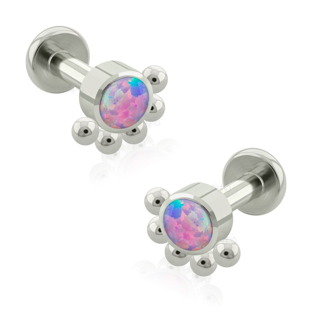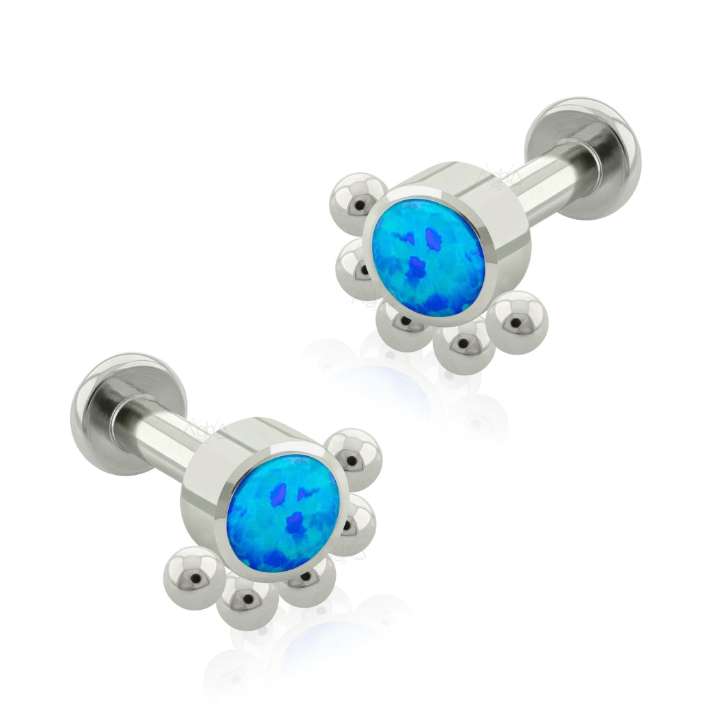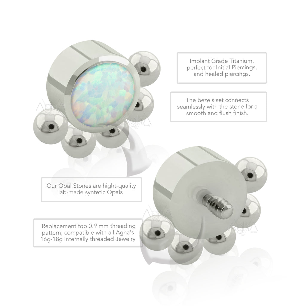 Pair 18g, Titanium ASTM F136, Internally Threaded Queen Accessory (Top and Bottom), Bezel Set, White Opal //Nose studs,Cartilage piercing