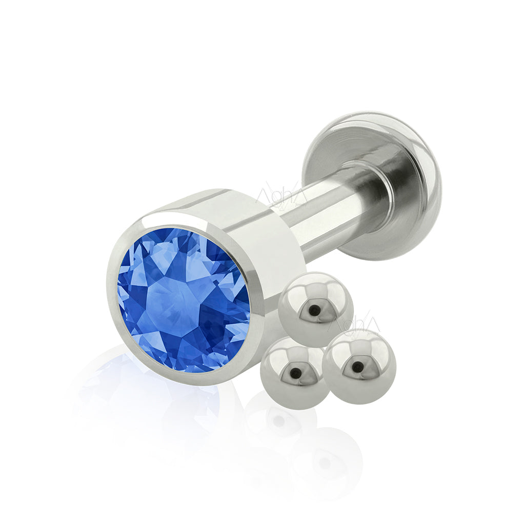 16g, Titanium ASTM F136, Internally Threaded Big Back or Small back Labret with Tri Cubic Zirconia Crystal