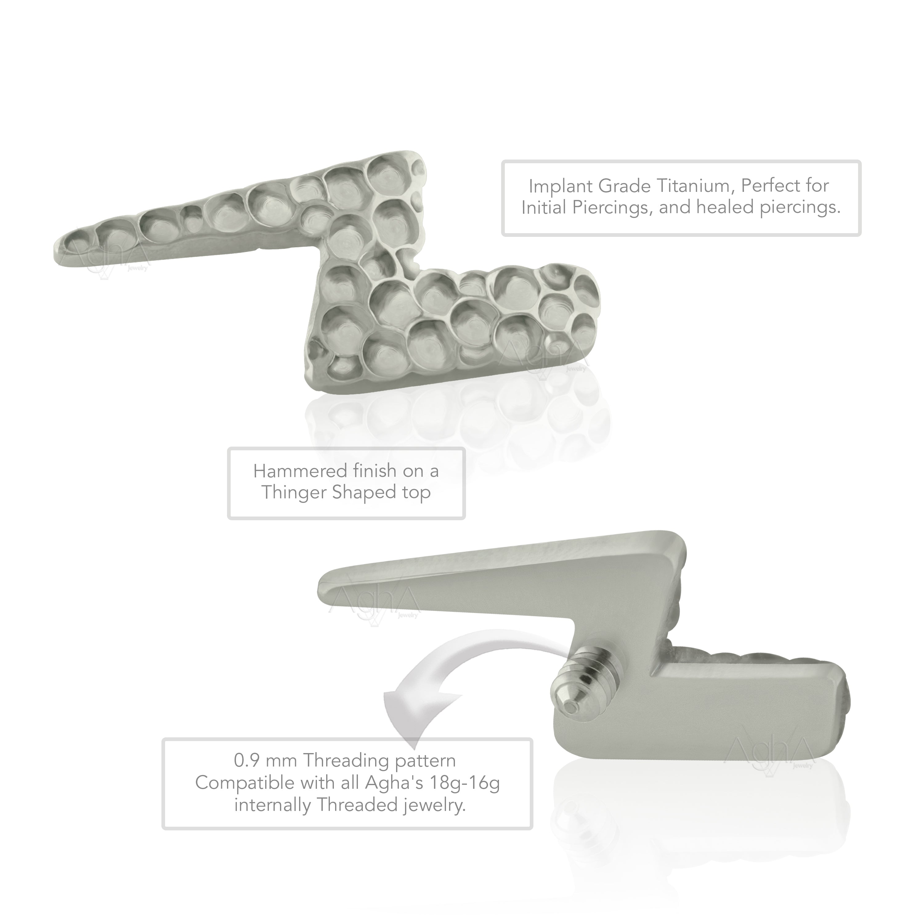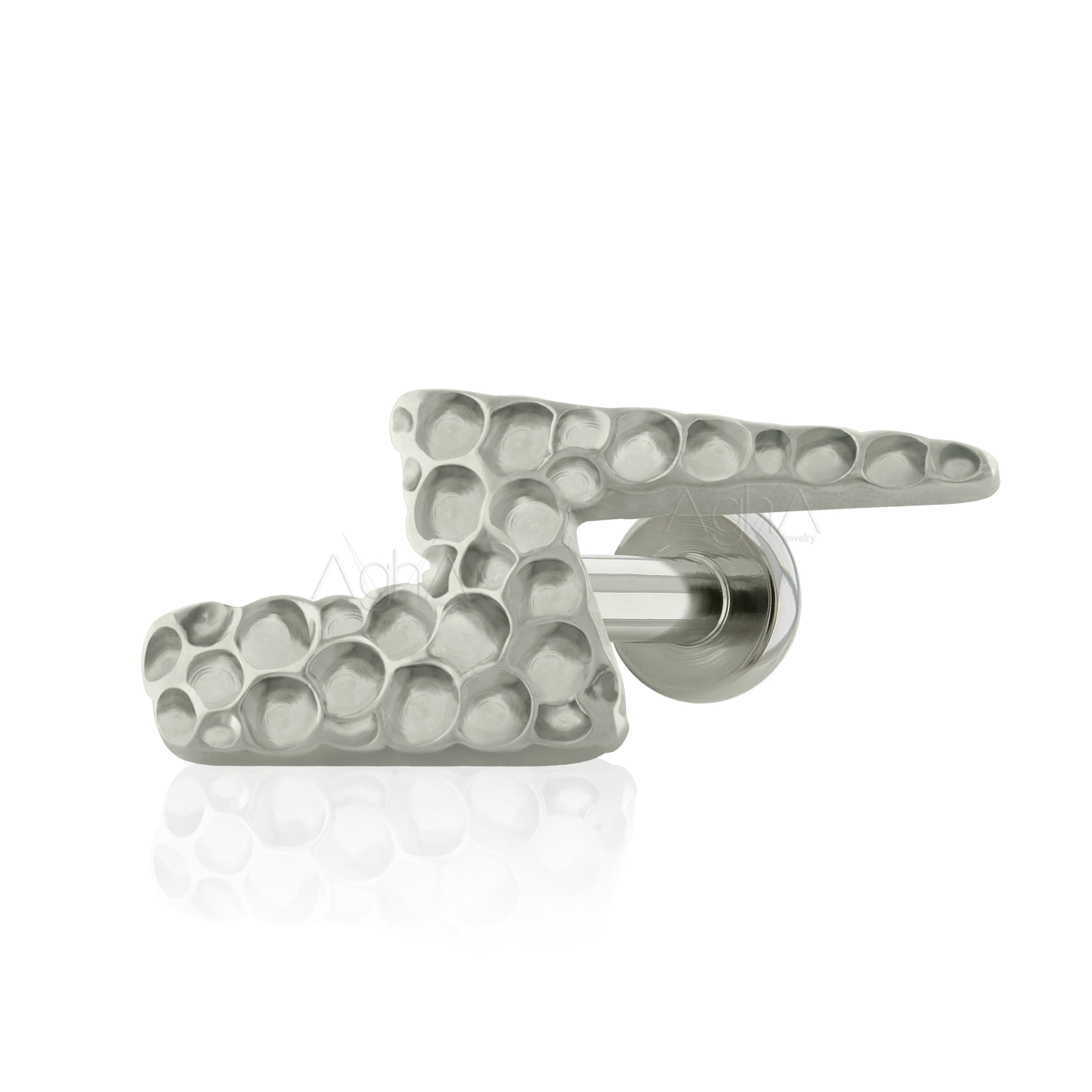 18g,Titanium ASTM F136,Internally Threaded Labret with Flat Hammered Thunder (Top and Bottom)//Nose studs,Cartilage piercing, earring