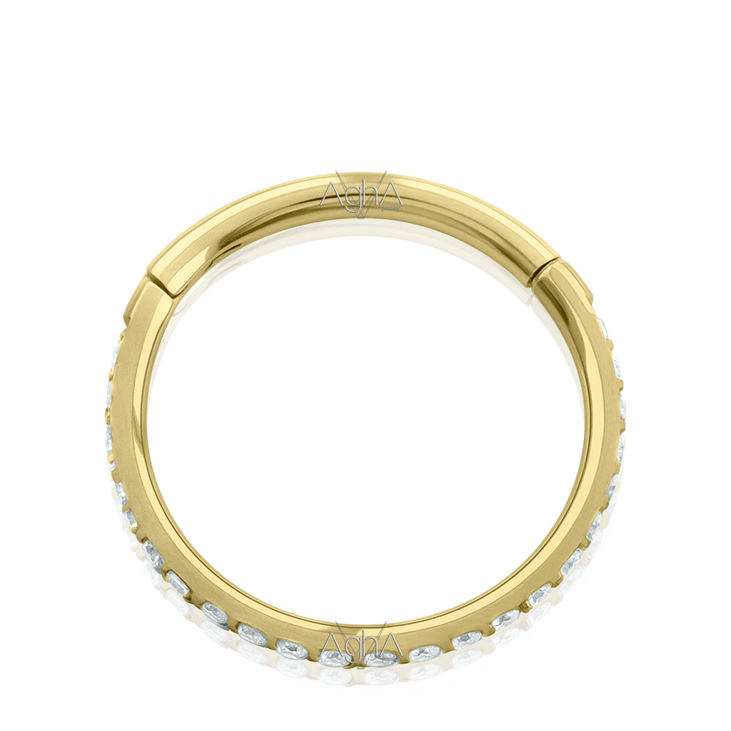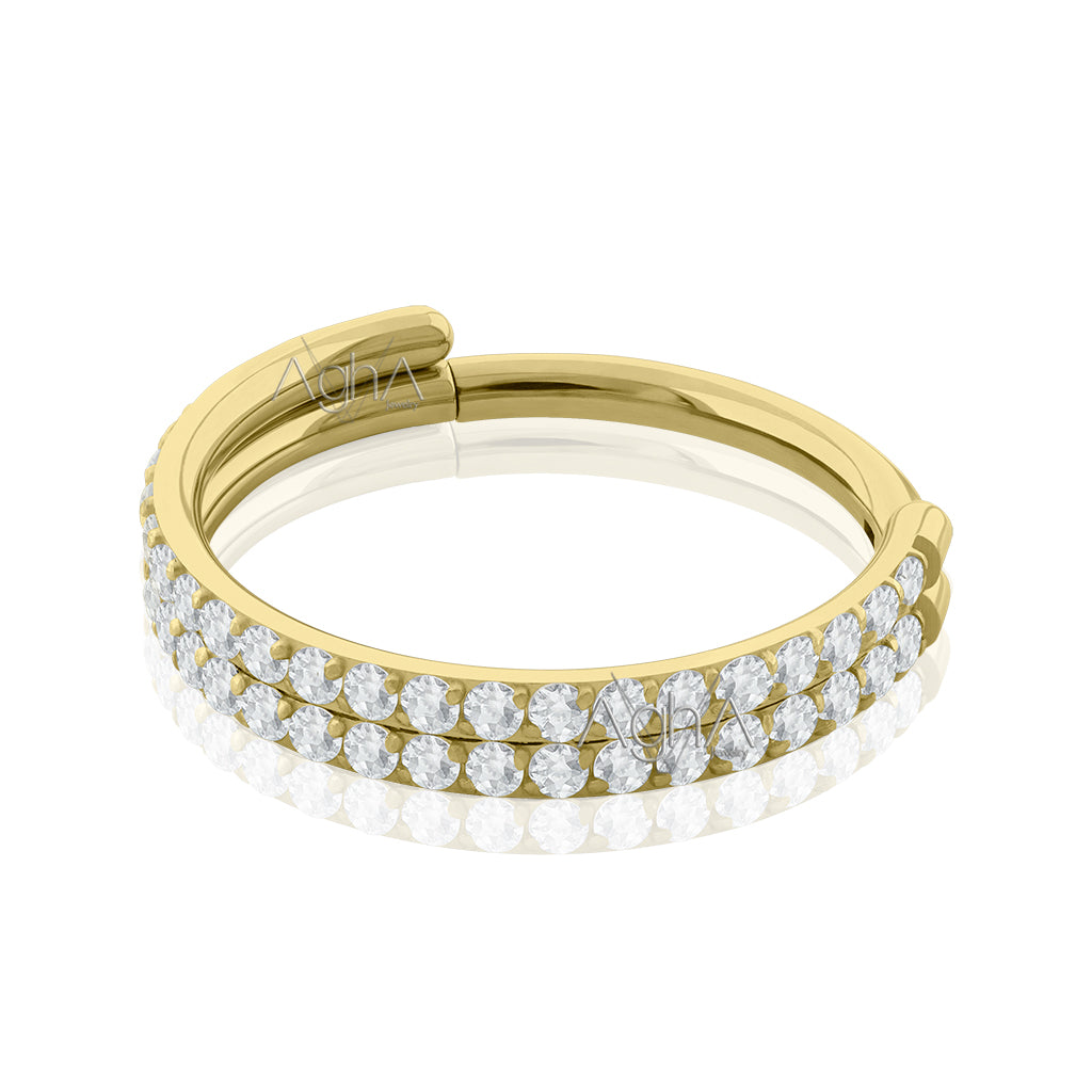 16g Plated Gold Titanium Astm F-136 Clicker Rings Double Side Facing with Prong setting, Cubic Zirconia