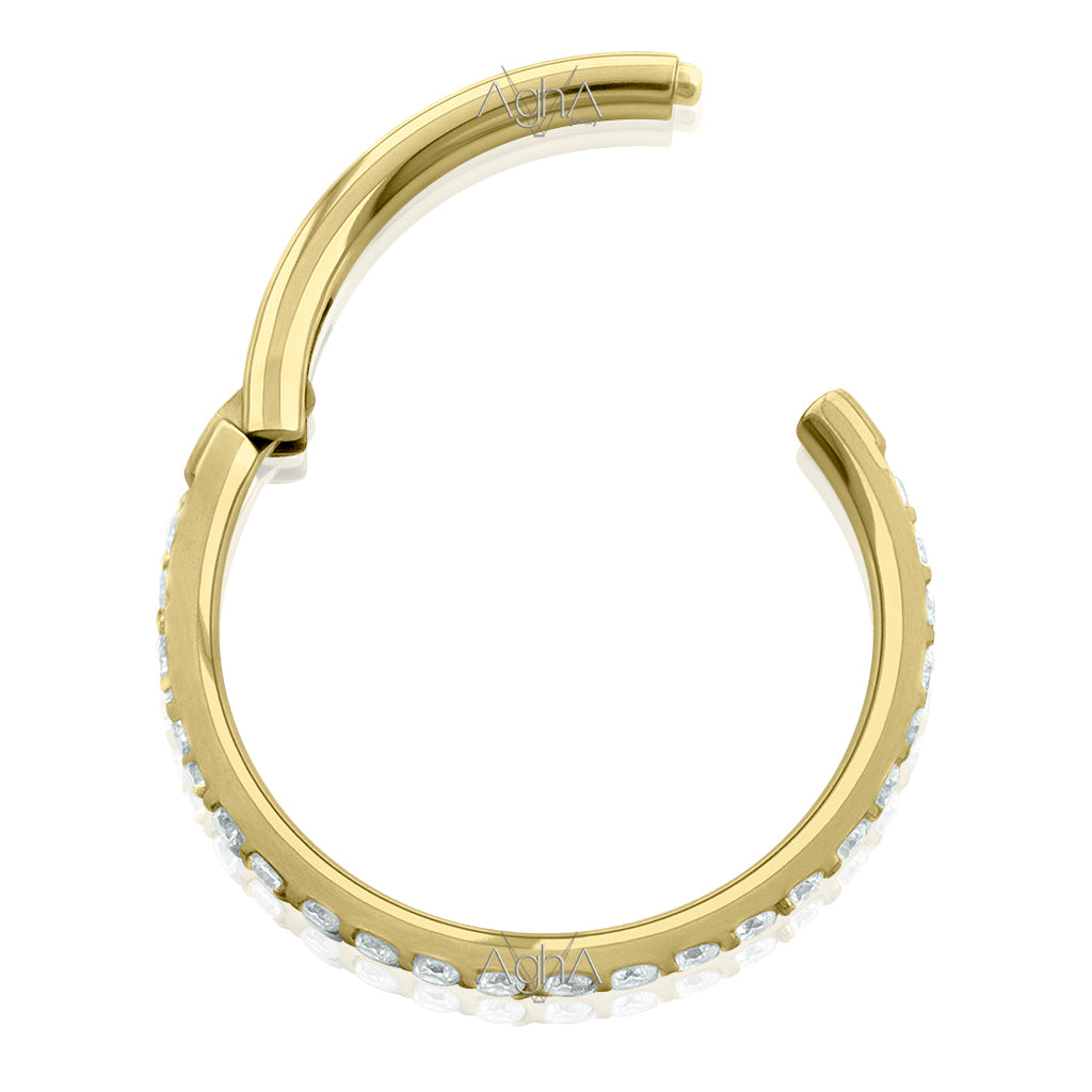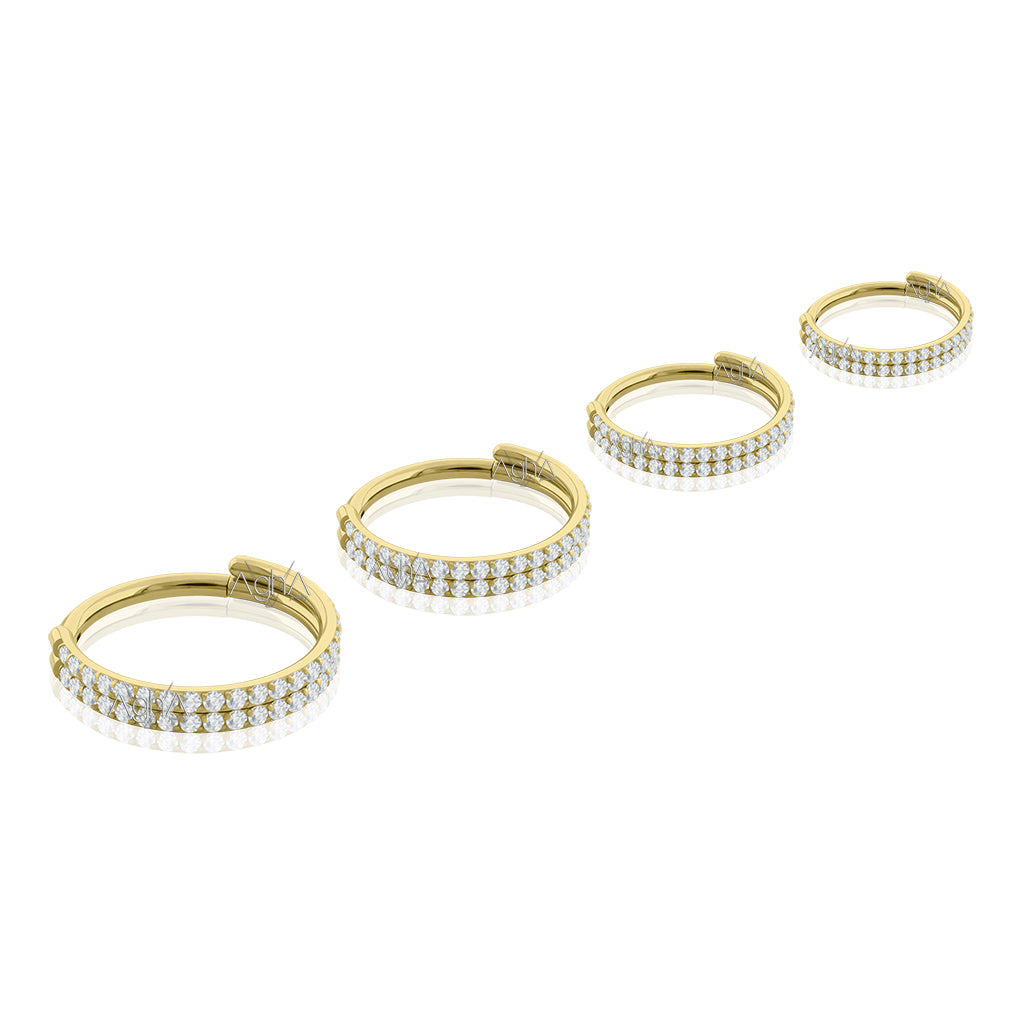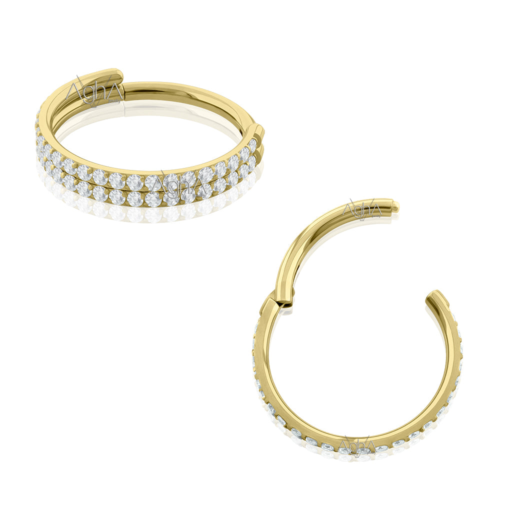 16G Plated Gold Titanium Astm F-136 Clicker Rings Double Side Facing with Prong setting, Cubic Zirconia // Hinged Hoop, Conch, Cartilage and Earlobe Piercings