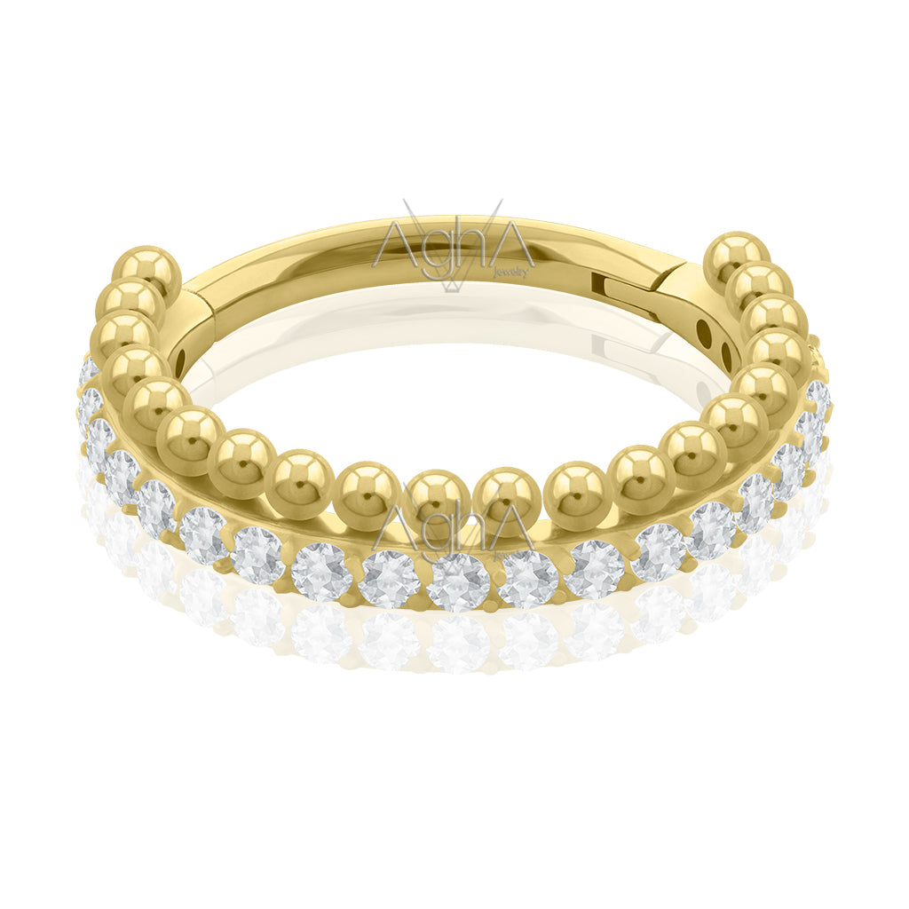 16g Plated Gold Titanium Astm F-136 Clicker Rings Double Side facing Astral with Prong setting, Cubic Zirconia