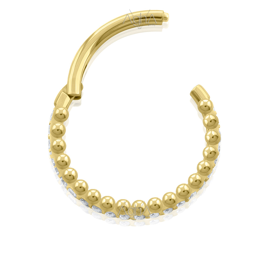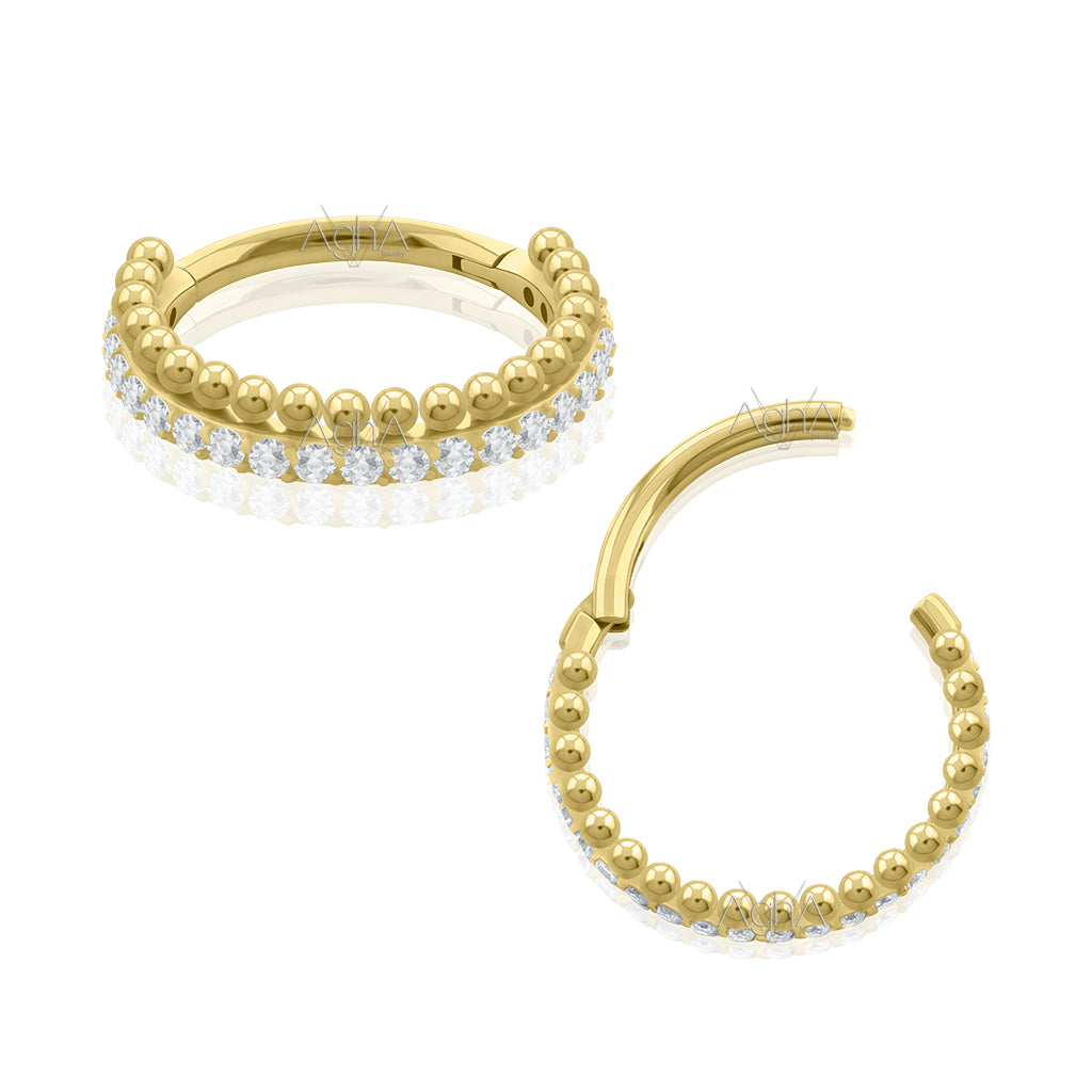 16G Plated Gold Titanium Astm F-136 Clicker Rings Side facing Astral with Prong setting, Cubic Zirconia // Hinged Hoop, Conch, Cartilage and Earlobe Piercings