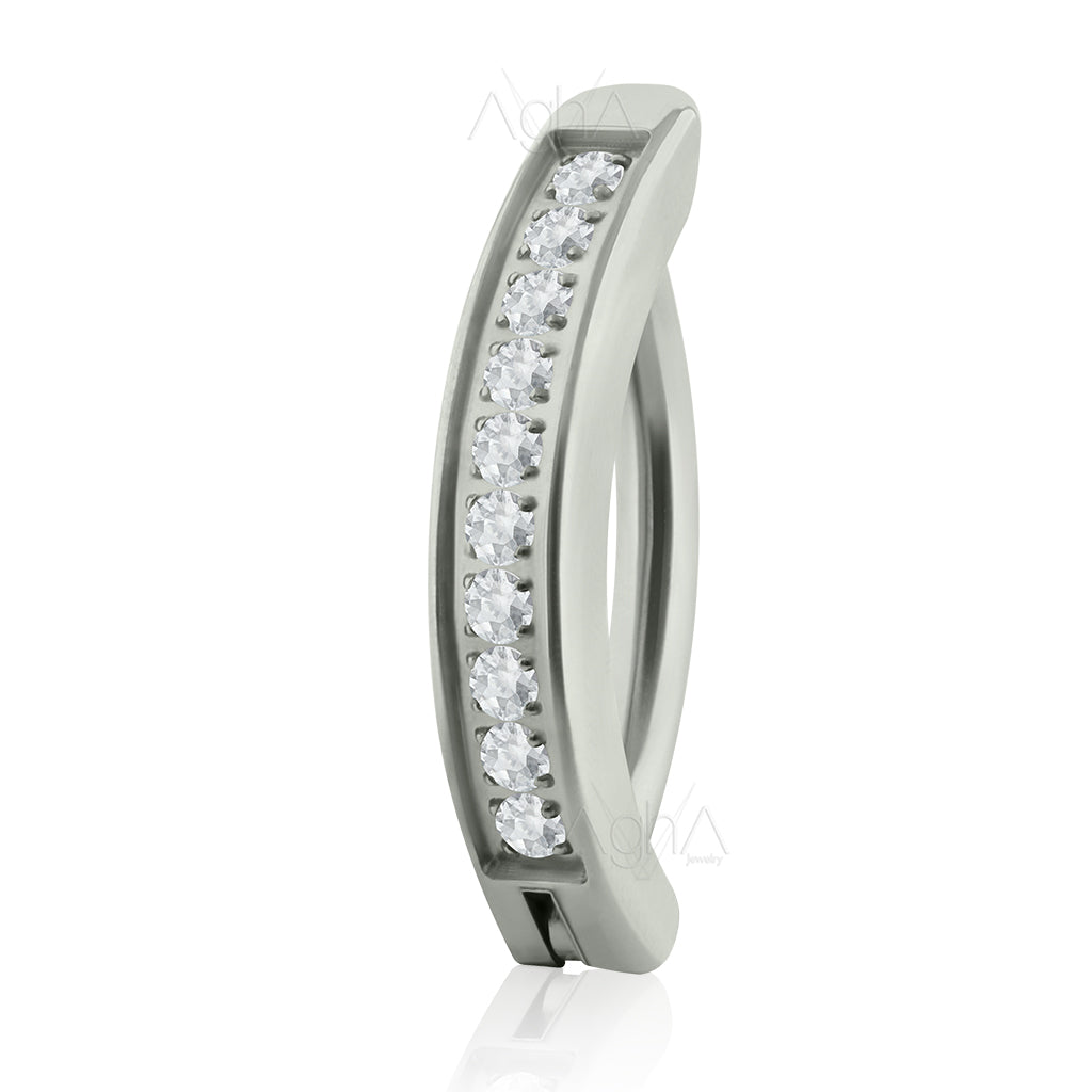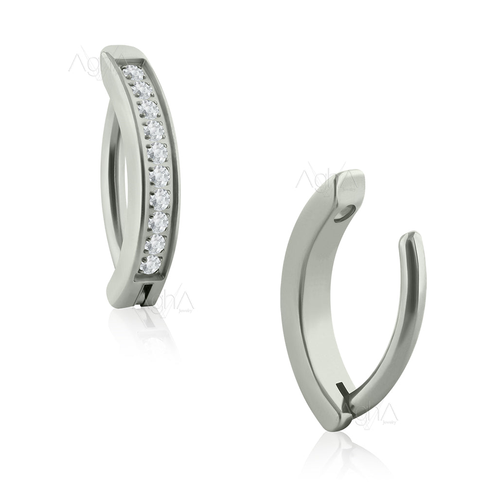14g, Titanium ASTM F136, Clicker Navel Hoop, Rectangle with Side Multijoya, Pong set Cubic Zirconia // Hinged Hoop Navel (Copia)