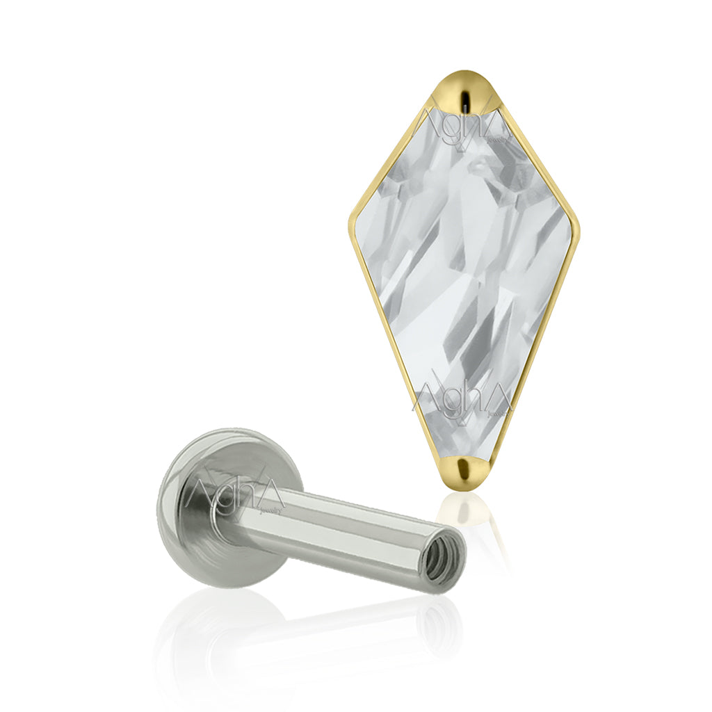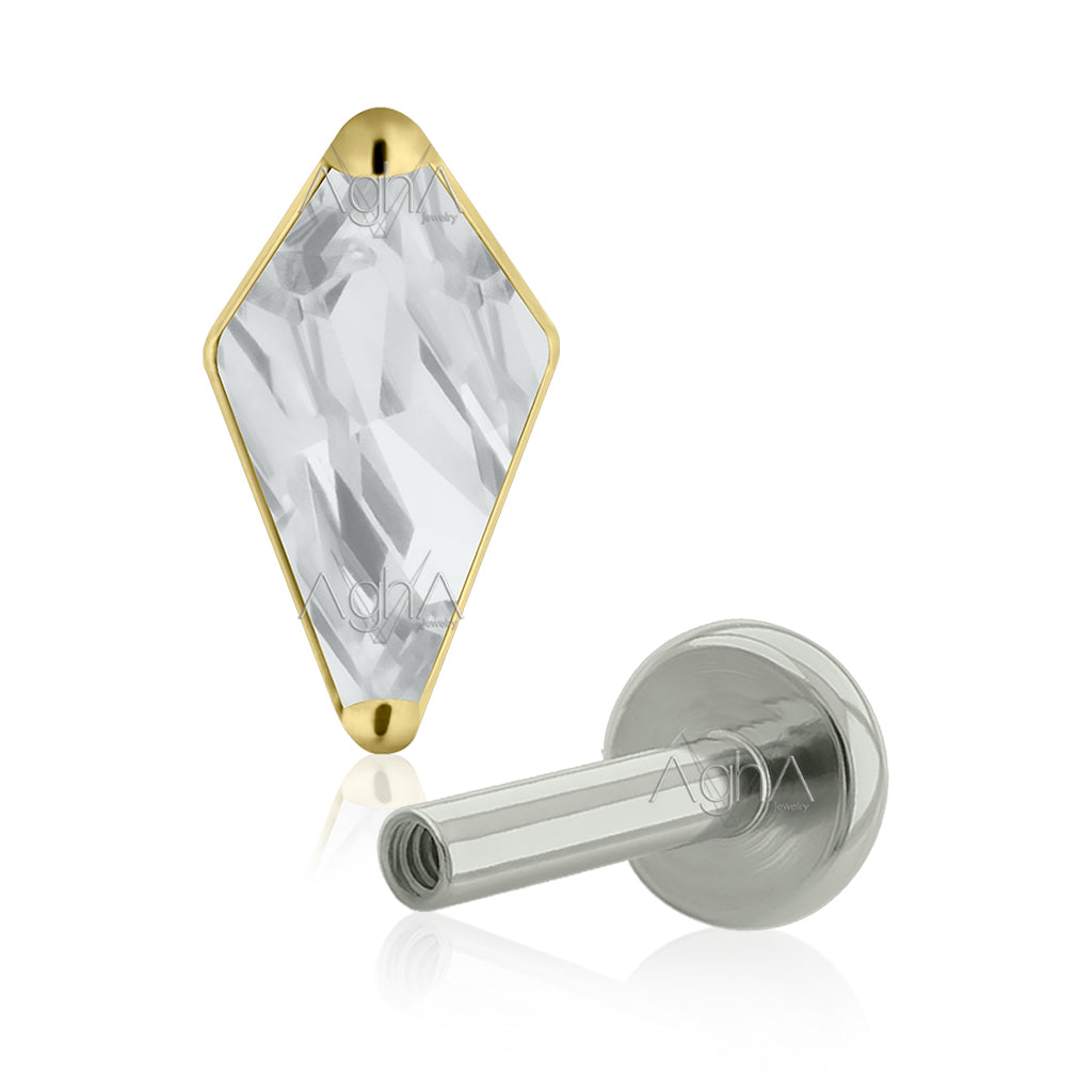 16g, Plated Gold Titanium Internal Thread Labret Small & Big Back with Rhombus Top, Prong Setting, Cubic Zirconia (Top and Bottom)// Ear piercing