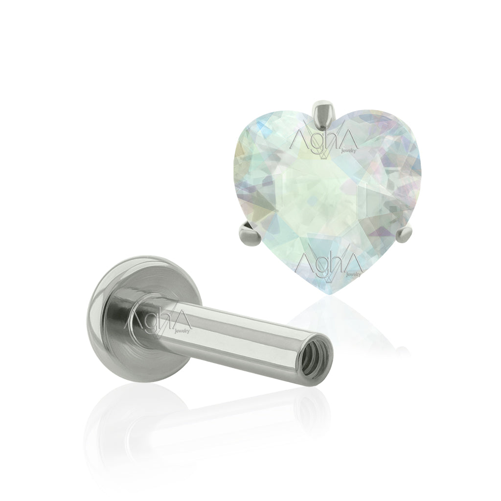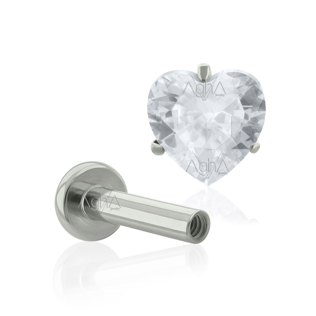18g, Implant Grade Titanium Internal Thread Labret Small Back with Heart Top, Prong Setting, Cubic Zirconia(Top and Bottom)//Ear piercing