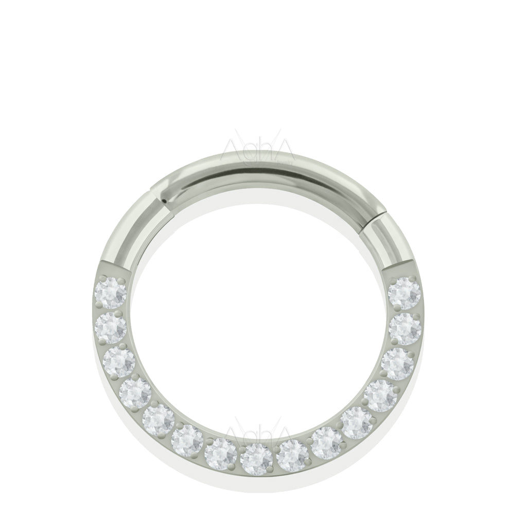 16g Implant Grade Titanium Hinged Hoop with Front FACING Cubic Zirconia.