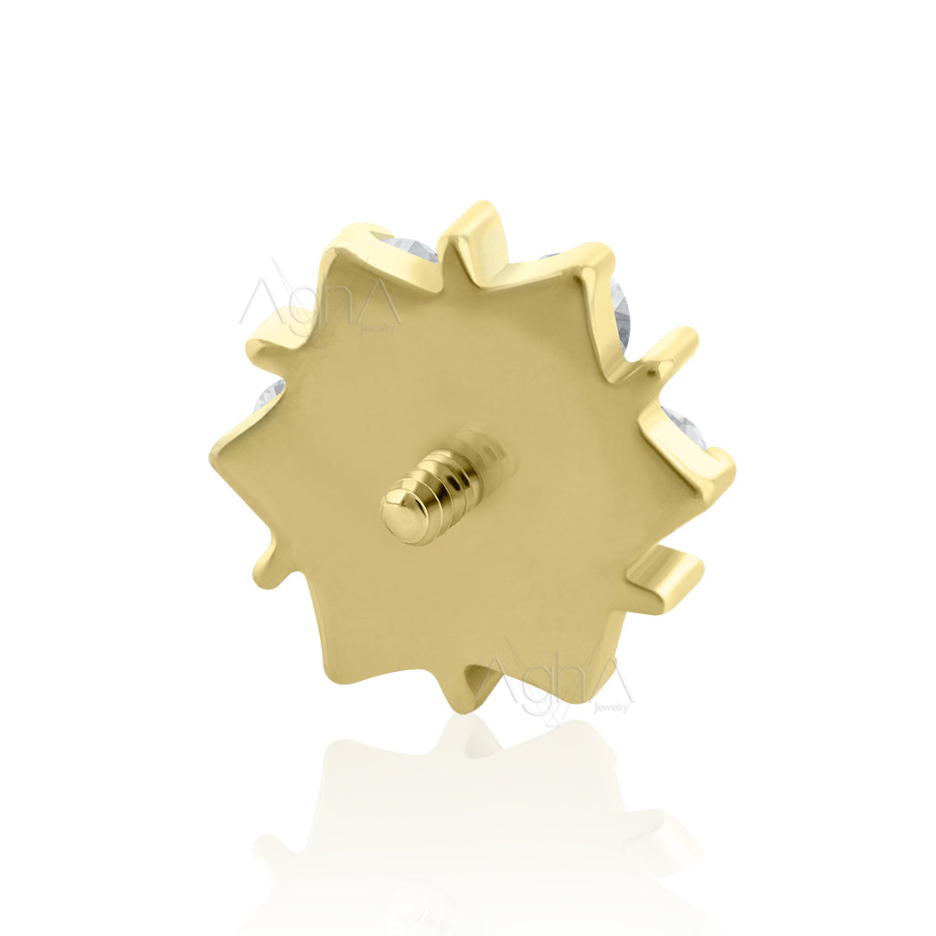 18g, Plated Gold Titanium ASTM F136,Internally Threaded Labret with Sacred flower, Prong Setting Cubic Zirconia