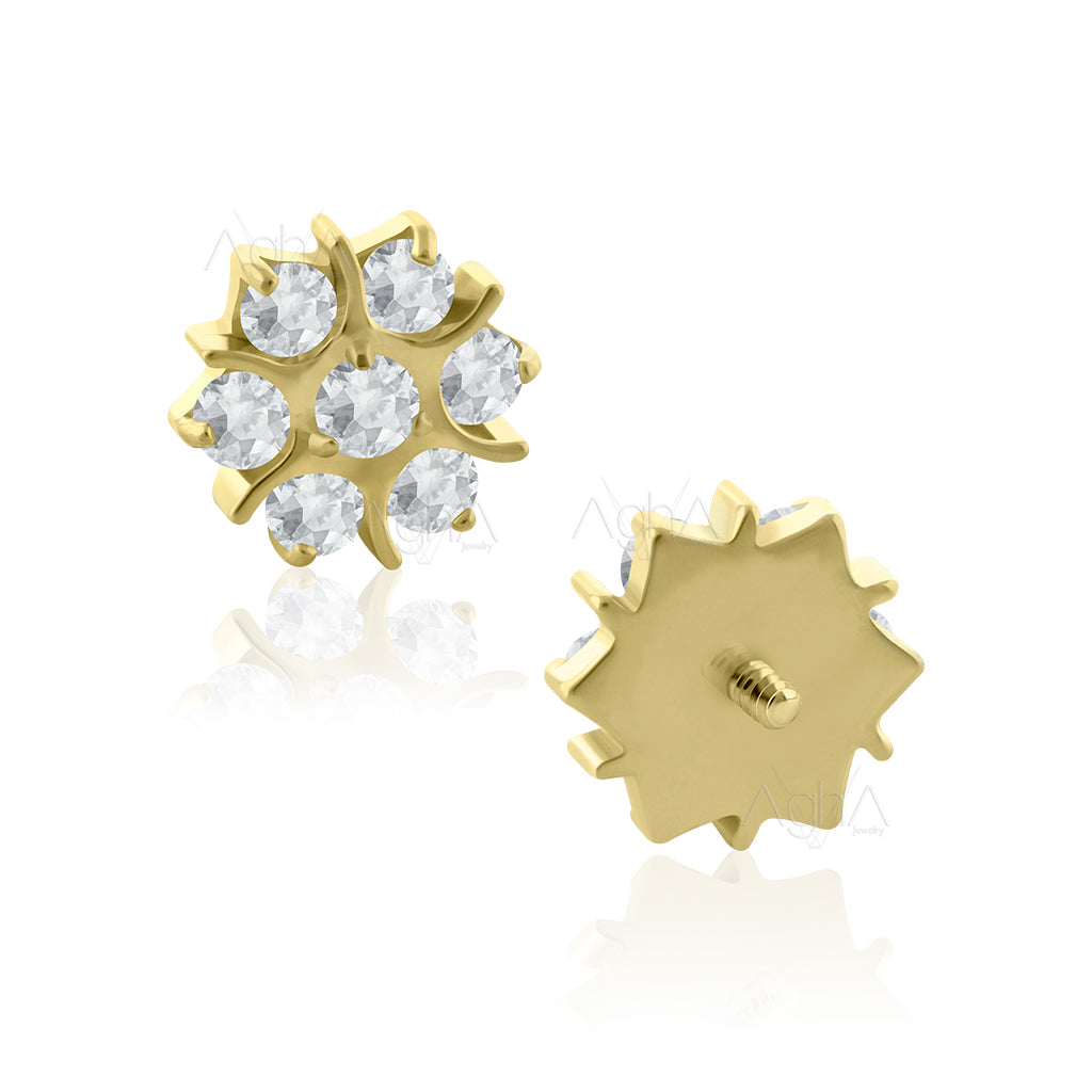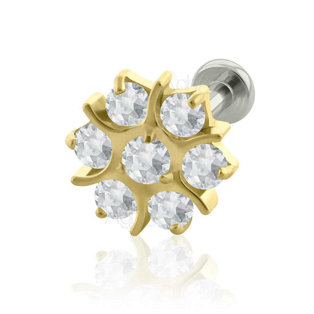 18g, Plated Gold Titanium ASTM F136,Internally Threaded Labret with Sacred flower, Prong Setting Cubic Zirconia (Top and Bottom)//Nose studs,Cartilage piercing, earring, figure stud