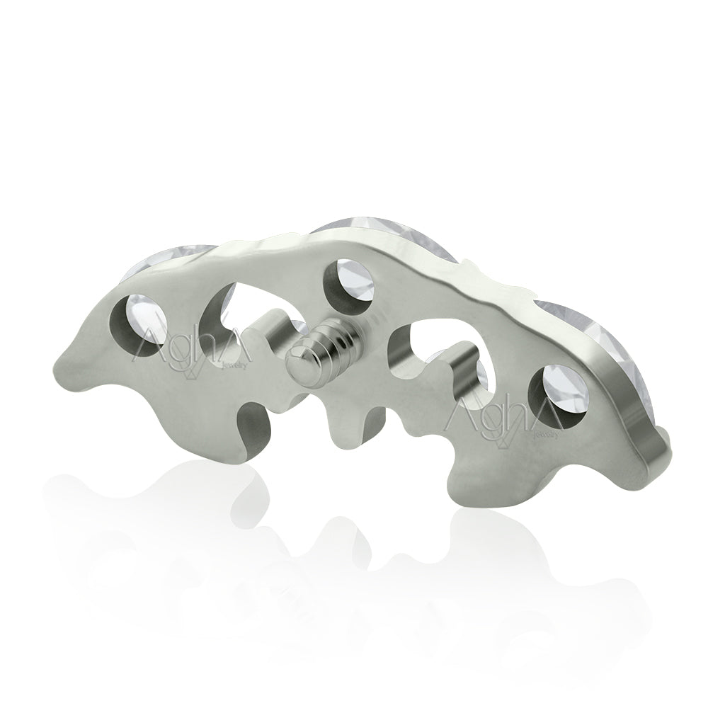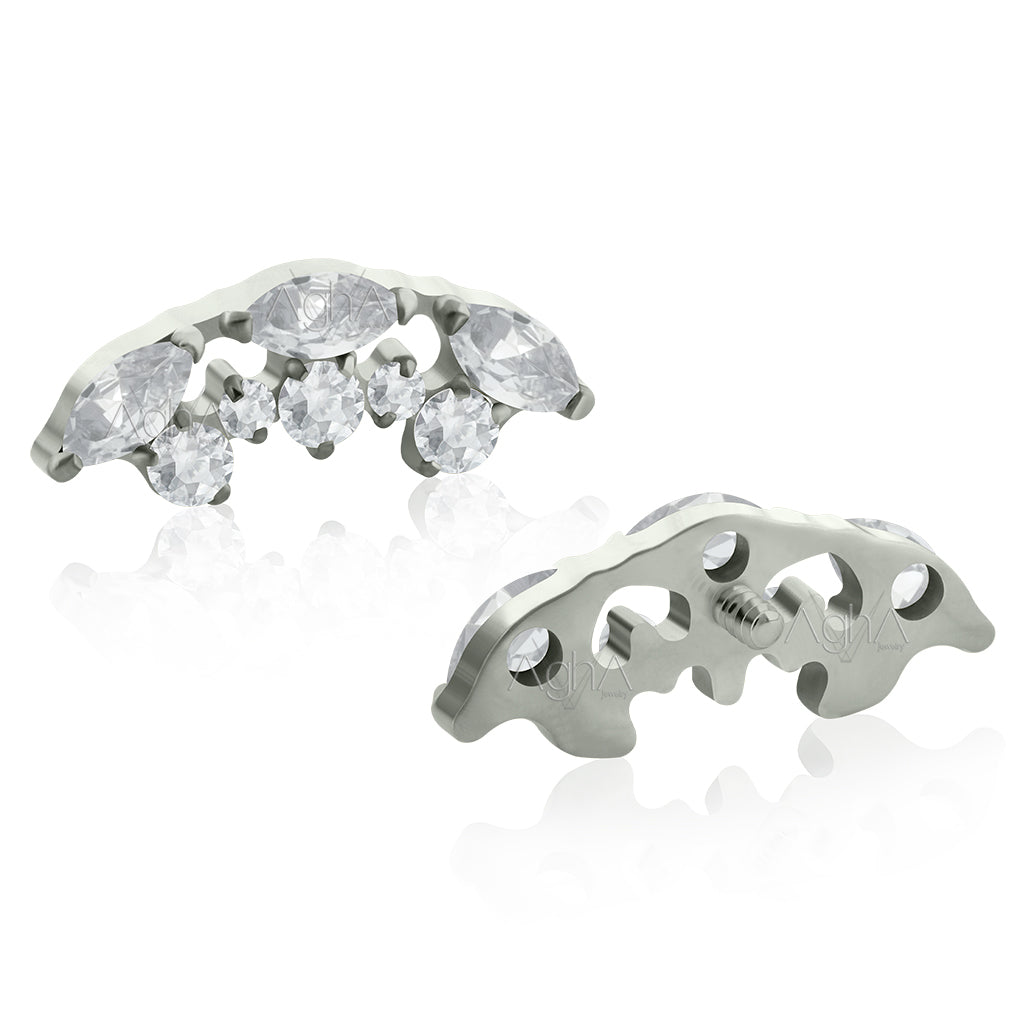 18g Titanium ASTM F136 Internally Threaded Labret with Curved multijewelry (Top and Bottom), Prong Set, Cubic Zirconia Crystals