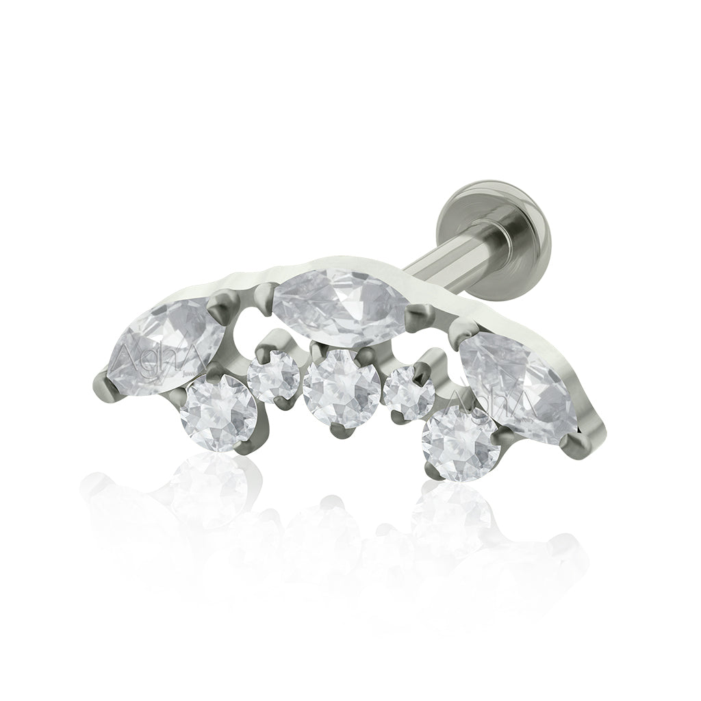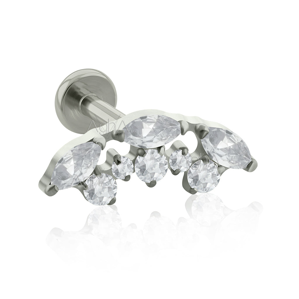 18g Titanium ASTM F136 Internally Threaded Labret with Curved multijewelry, Prong Setting, Cubic Zirconia Crystals