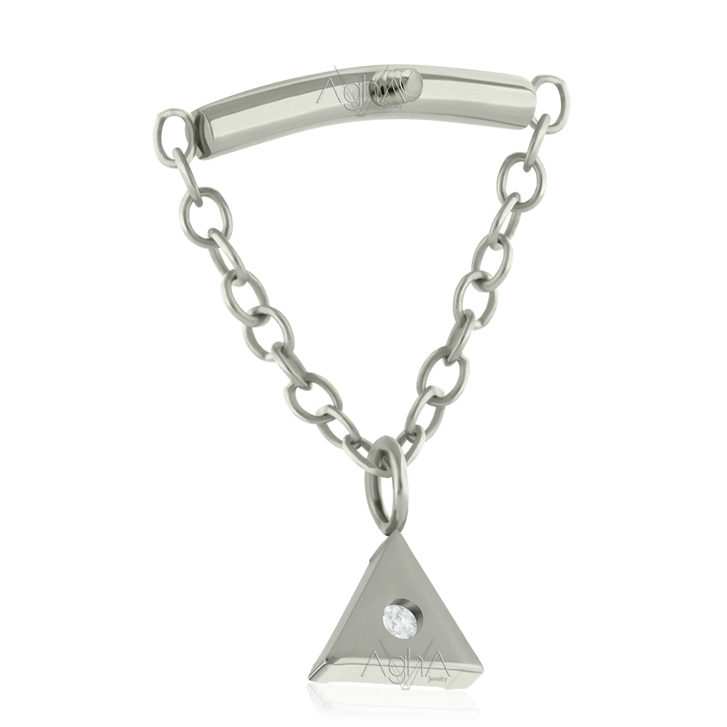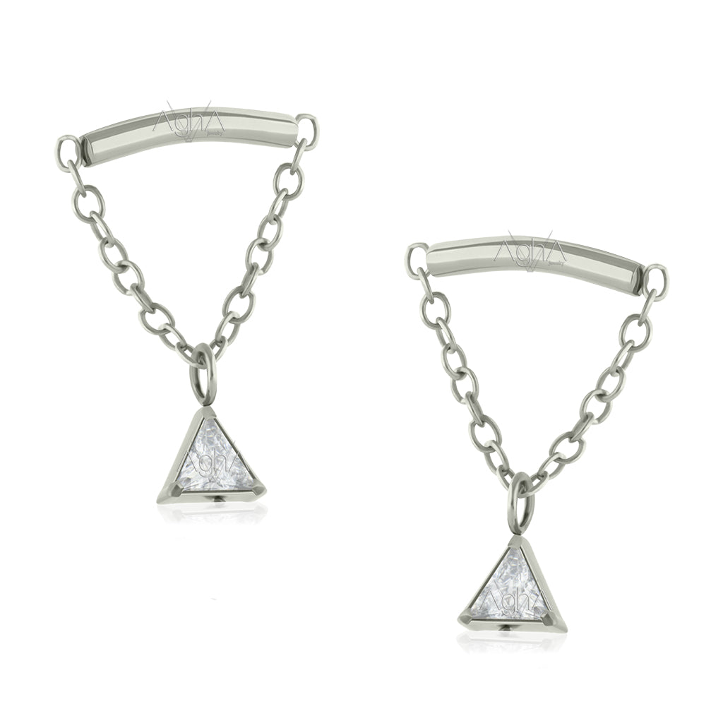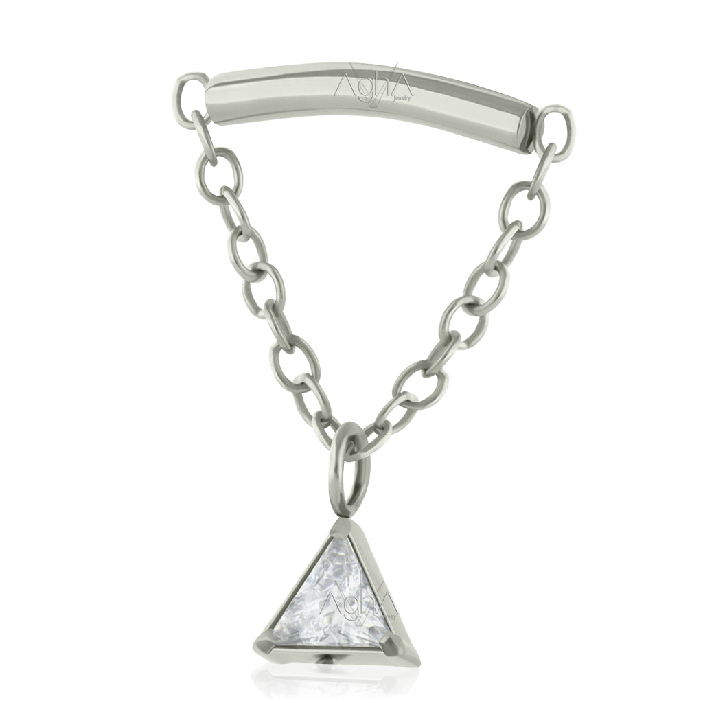 18g-16g, Titanium, Internally Threaded Pending Triangle jewel prong set with Cubic Zirconia (Top Only)//cartilage piercing lobe jewelry