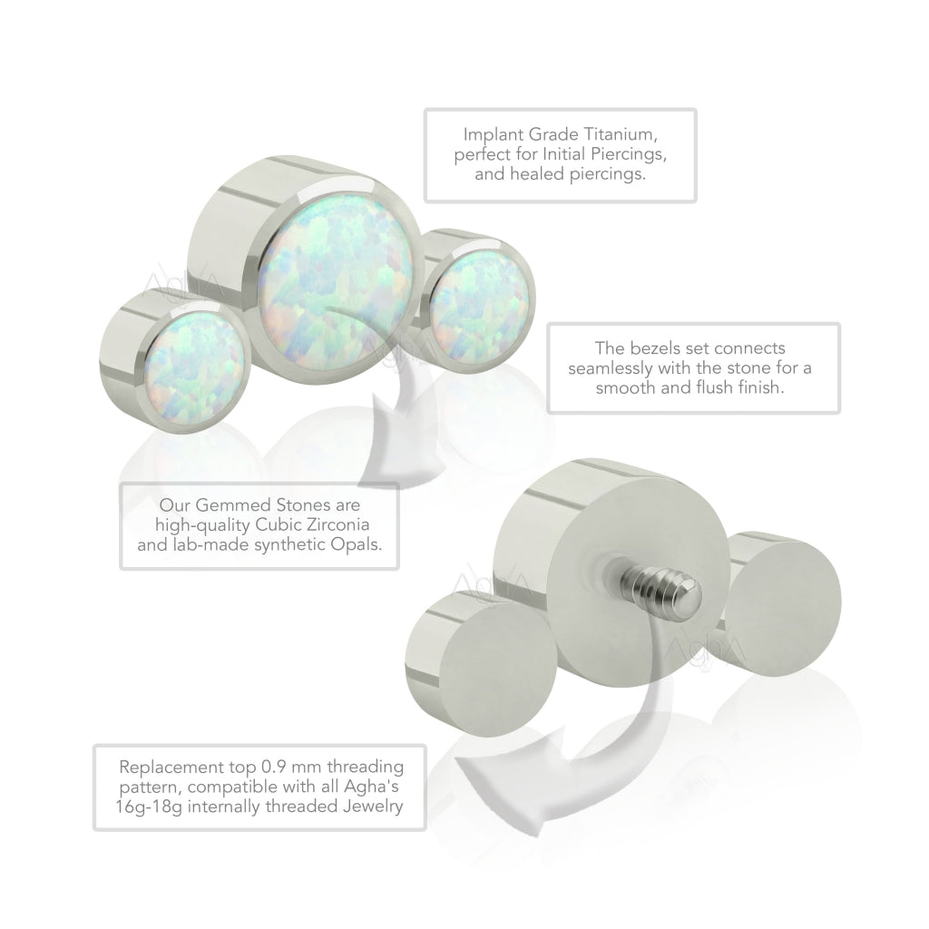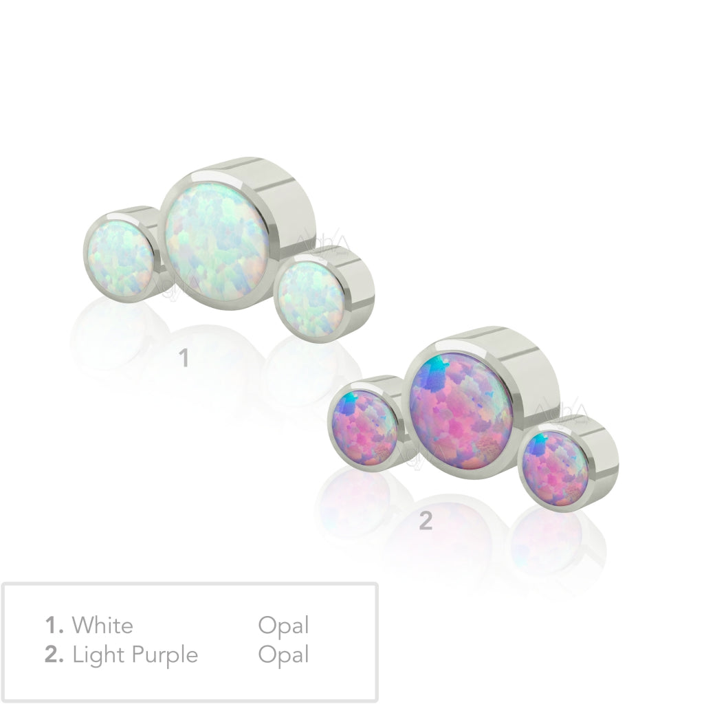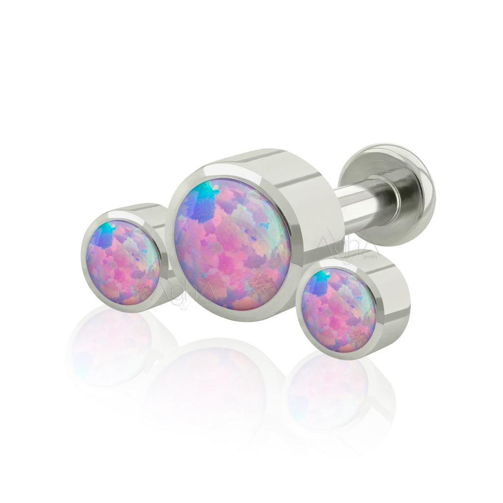 18g, Titanium ASTM F136 Internally Threaded Big Back Labret with Neptuno Cluster Bezel Setting Synthetic Opal (Top and Bottom)