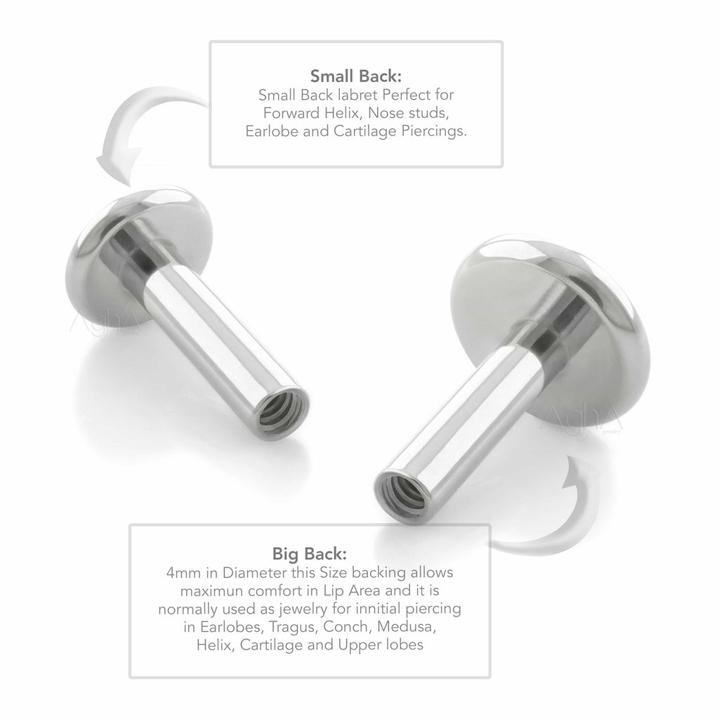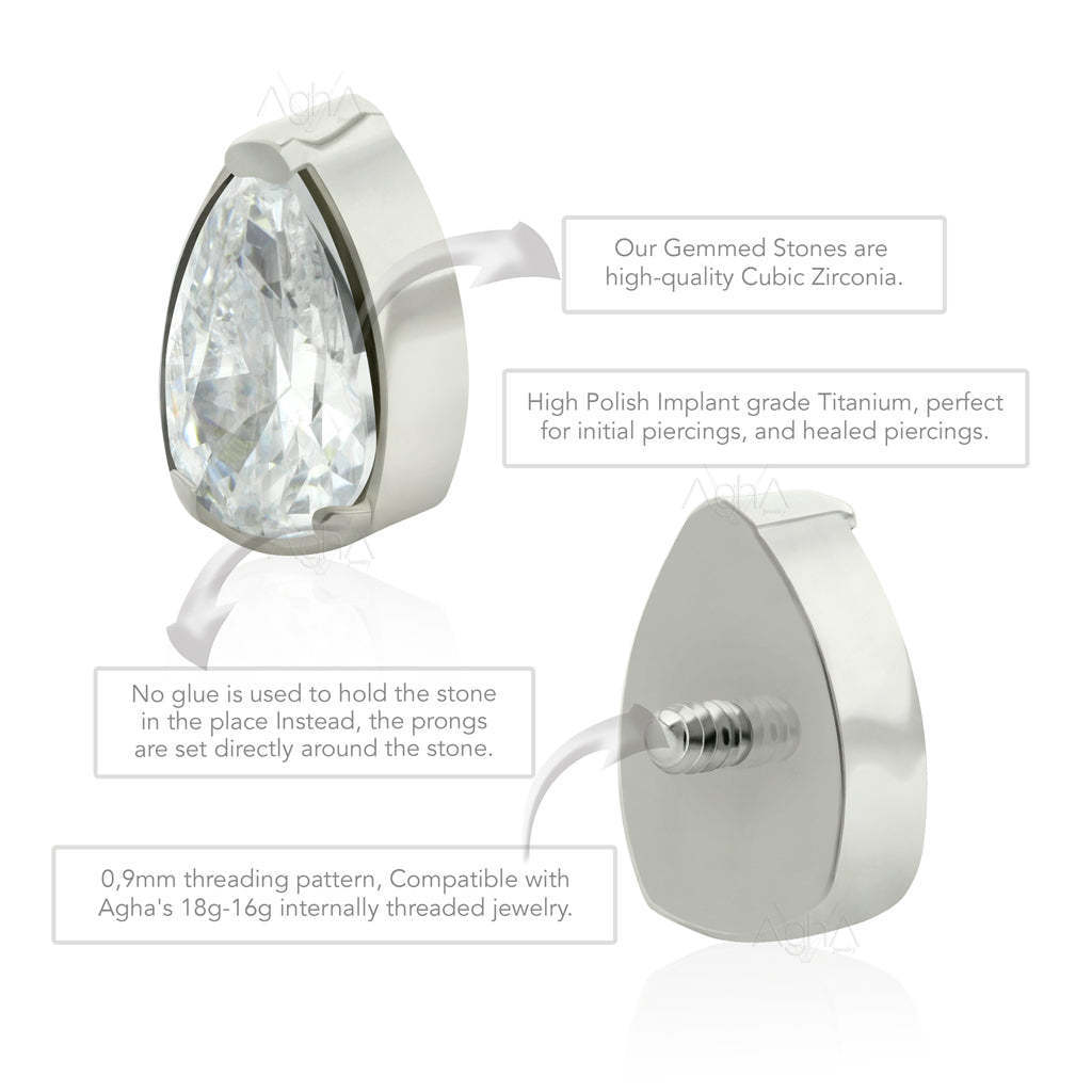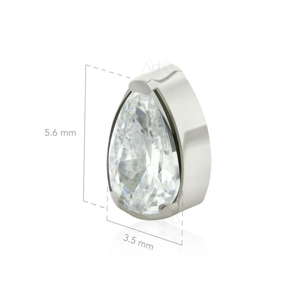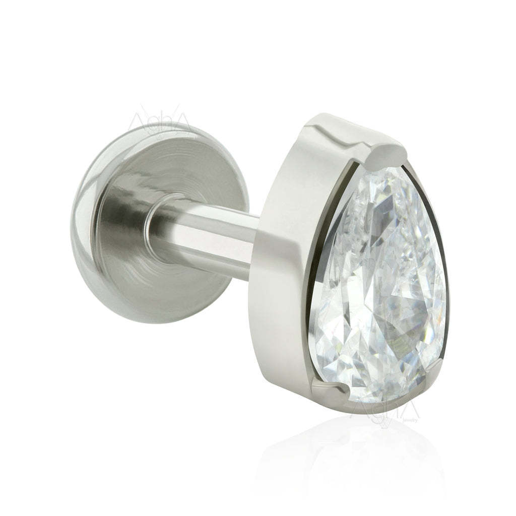 16g, Titanium ASTM F136, Internal Thread Labret Small & Big Back with Tear Drop Top, Prong Setting, Cubic Zirconia Crystal (Top and Bottom)//ear piercing