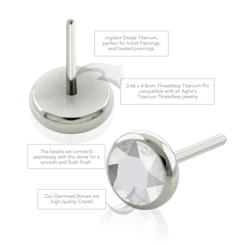 Pair, 14g Implant Grade Titanium Threadless Labret with Flat Bezel Setting, Crystals (Top and Bottom)//Cartilage and earlobe jewelry