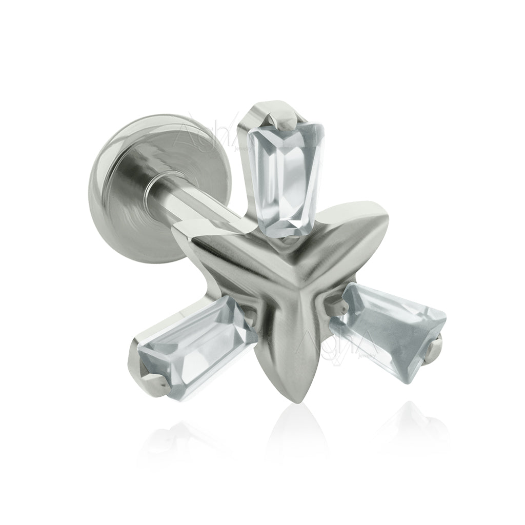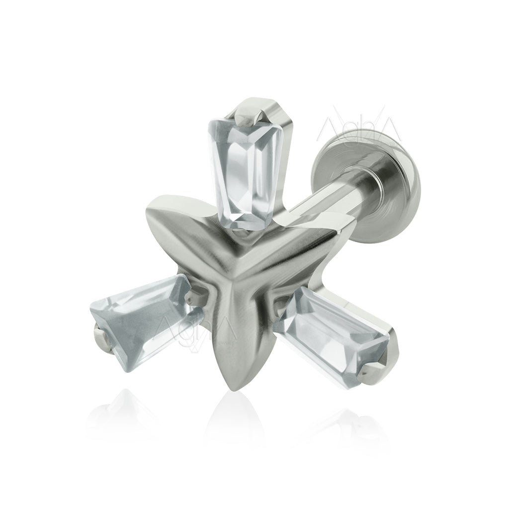 16g, Implant Grade Titanium Internal Thread Labret Small & Big Back with Special Trinity top, Prong Setting, Cubic Zirconia