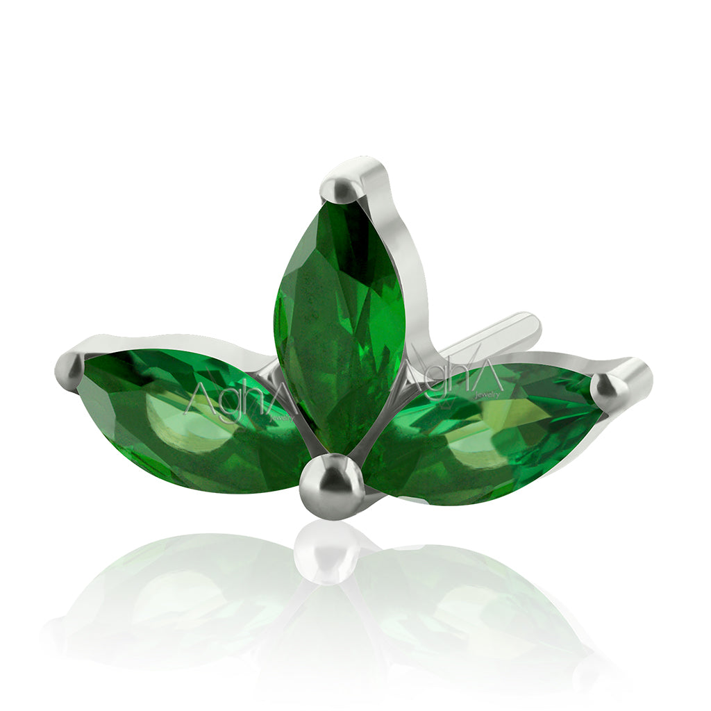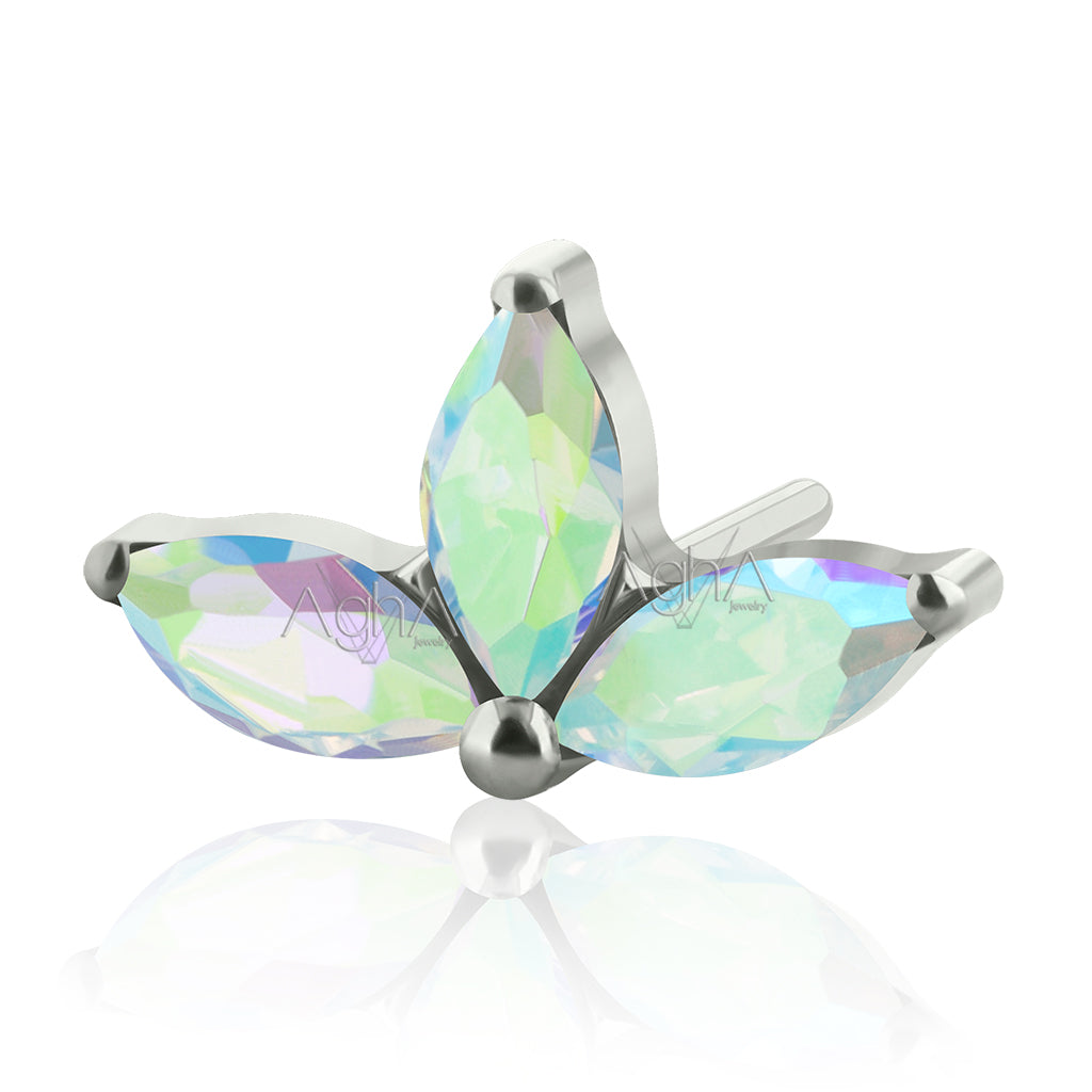 Implant Grade Titanium Jewelry Threadless Prong-setting Triple Navette Cubic Zirconia top