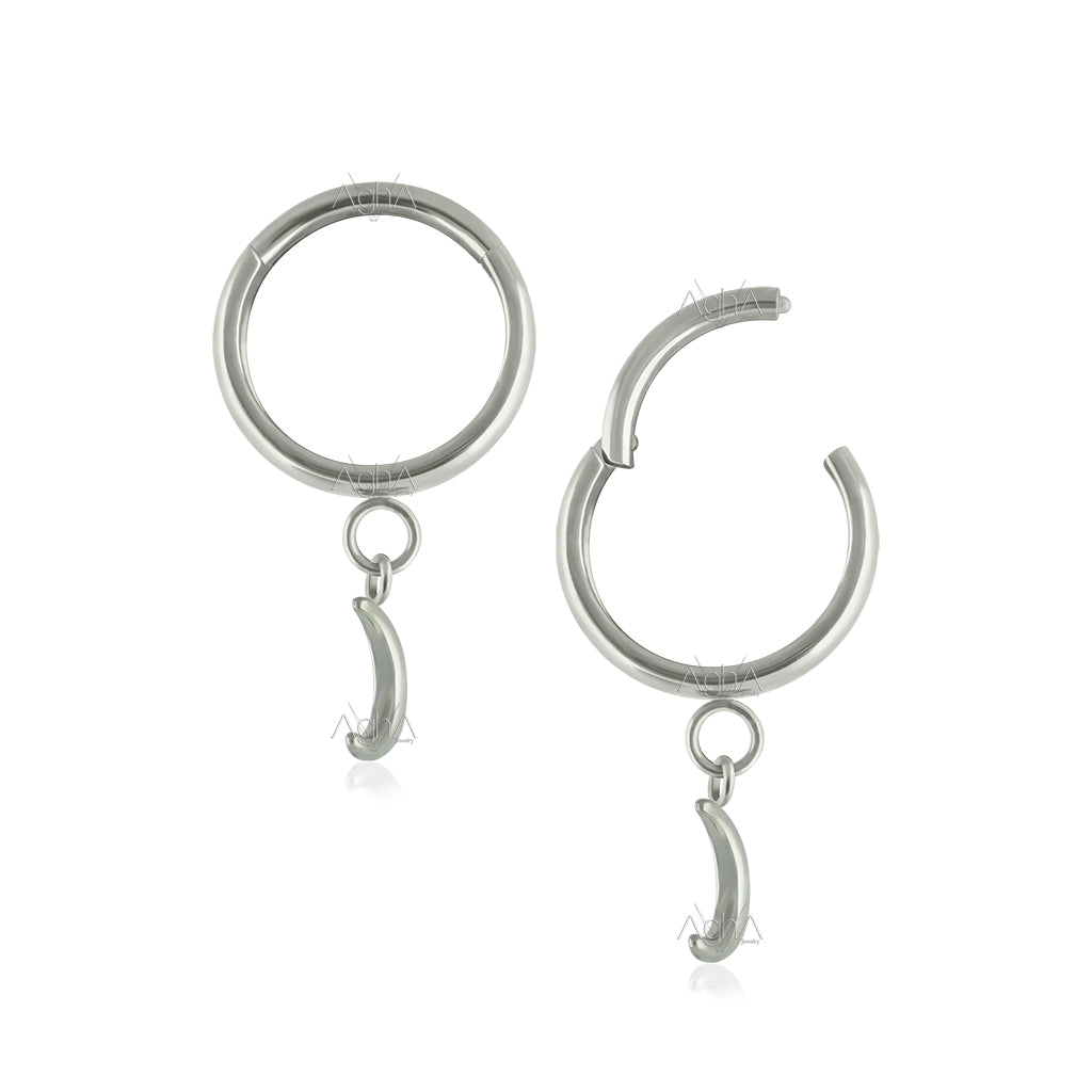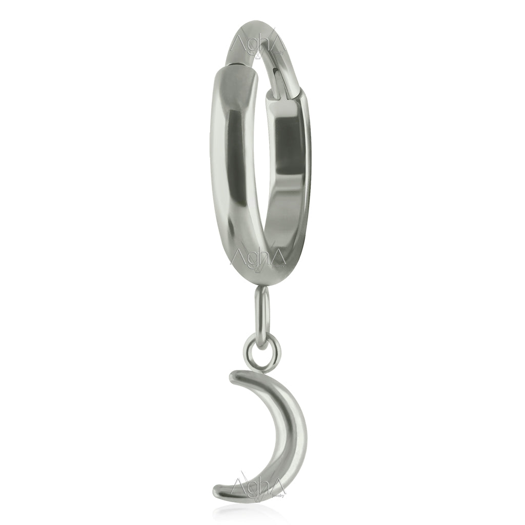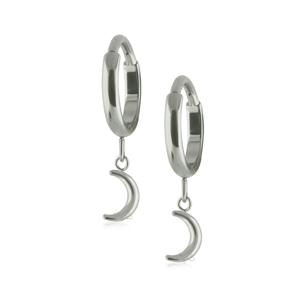 16G Pair Implant Grade Titanium Dangle Moon Hoop Earrings
